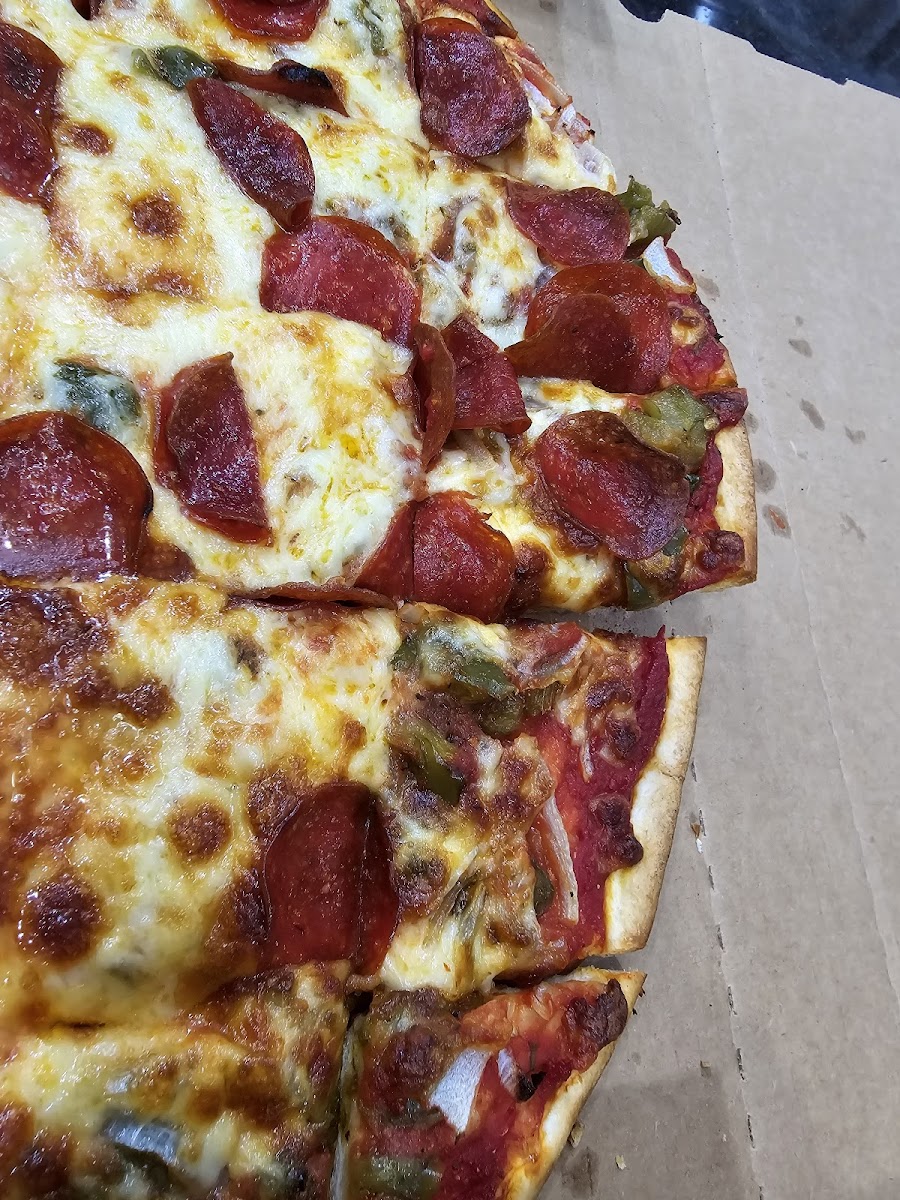 Our Friday night staple for nearly 8 years. 18" thin crust all pepperoni half sausage most time. The fried chicken is great the Lasagna is great, it's all great! Try them out if you're in or near downtown Bartlett.